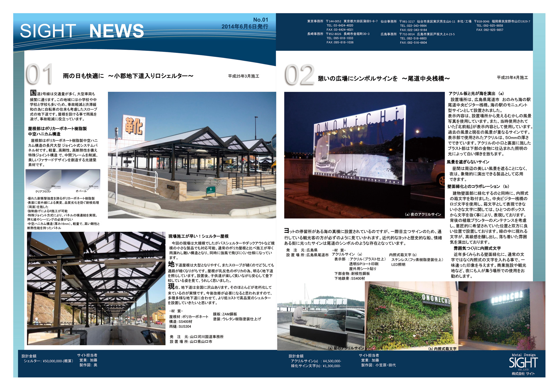 毎号2つの実績物件にフォーカスを当て、製品の材料や特徴などを写真とともに紹介しています。